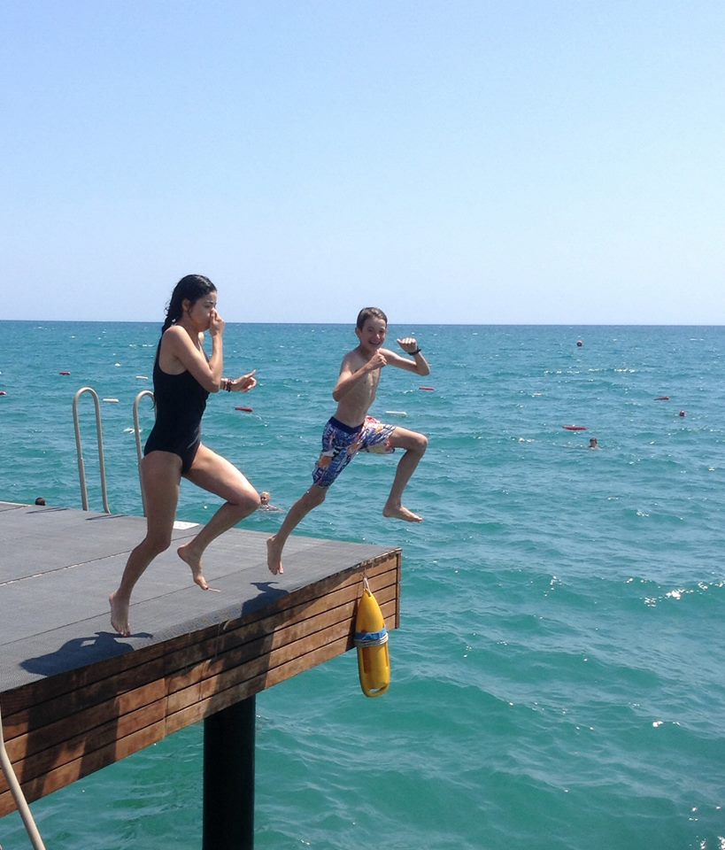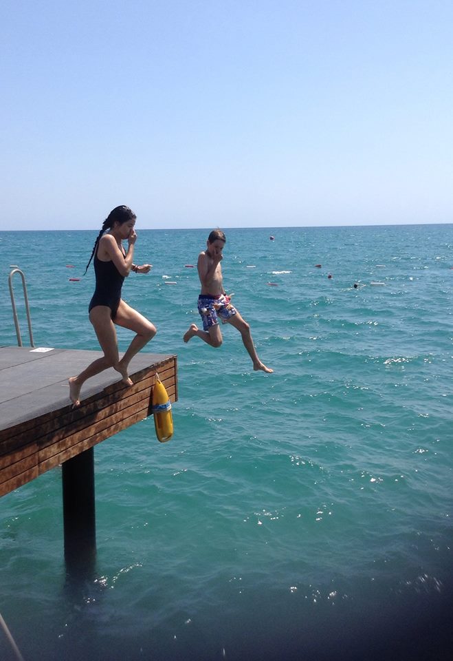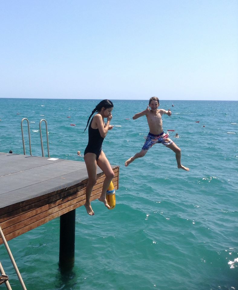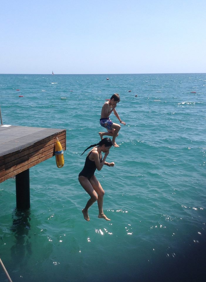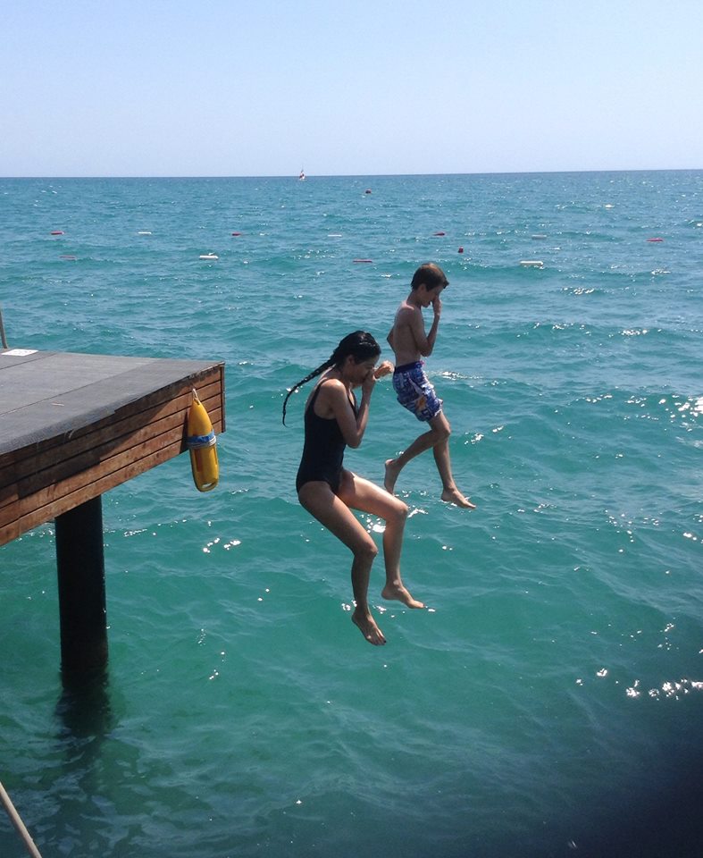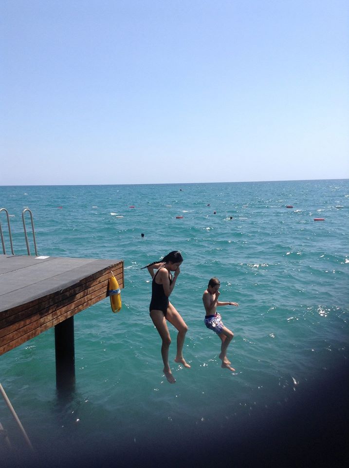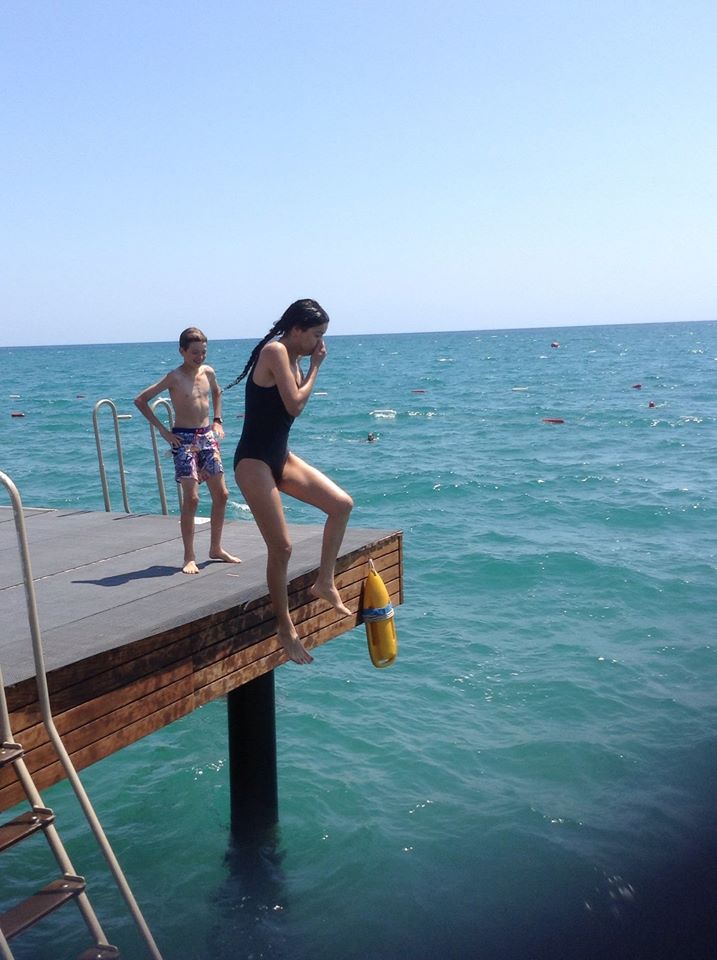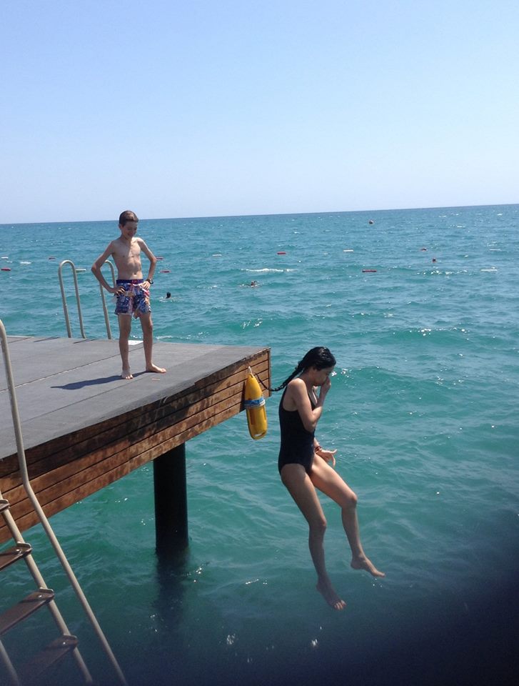 De cateva zile Andrutu, impins de Martyn, tot rade de mine ca nu am curaj sa sar in mare!?? Azi am sarit….sunt retinuta in a reda exact sunetele emise la fiecare saritura….plus stransul de nas…asa ca va rog ingaduinta!